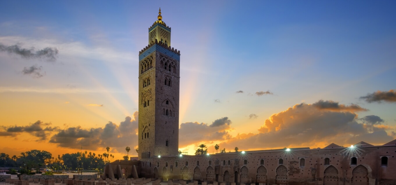 Visita aos principais pontos da cidade, incluindo Koutoubia, Palácio Bahia, souks e Praça Jemaa el-Fna. Jantar especial de despedida.